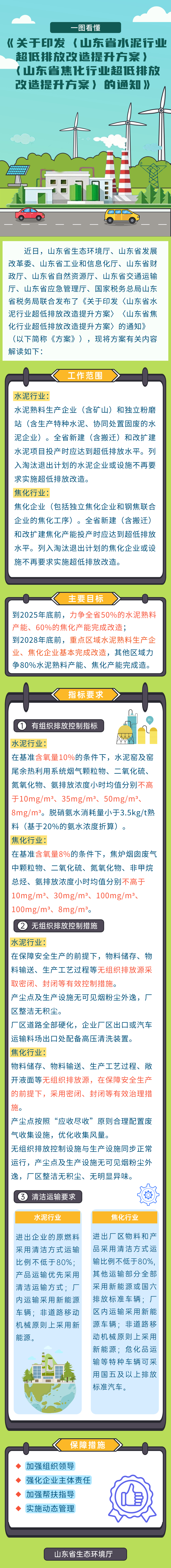 一图读懂丨《关于印发〈山东省水泥行业超低排放改造提升方案〉〈山东省焦化行业超低排放改造 提升方案〉的通知》